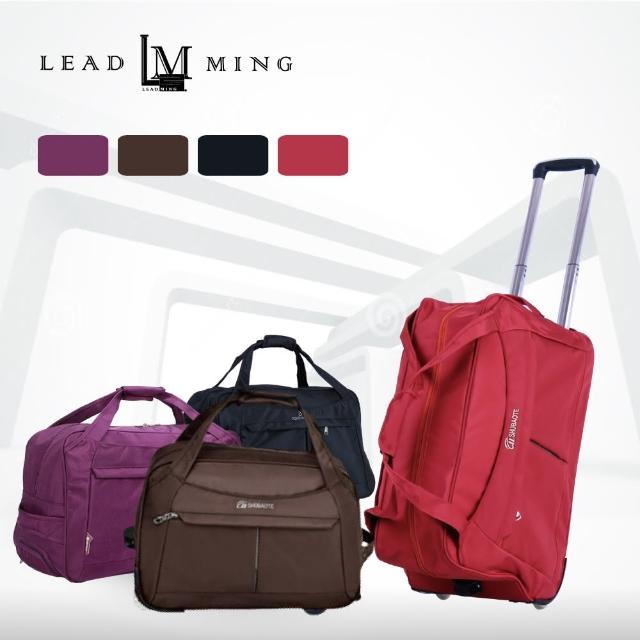 【Leadming】雅痞風拉桿旅行袋-約22吋(西瓜紅&軍綠色&尊爵黑)